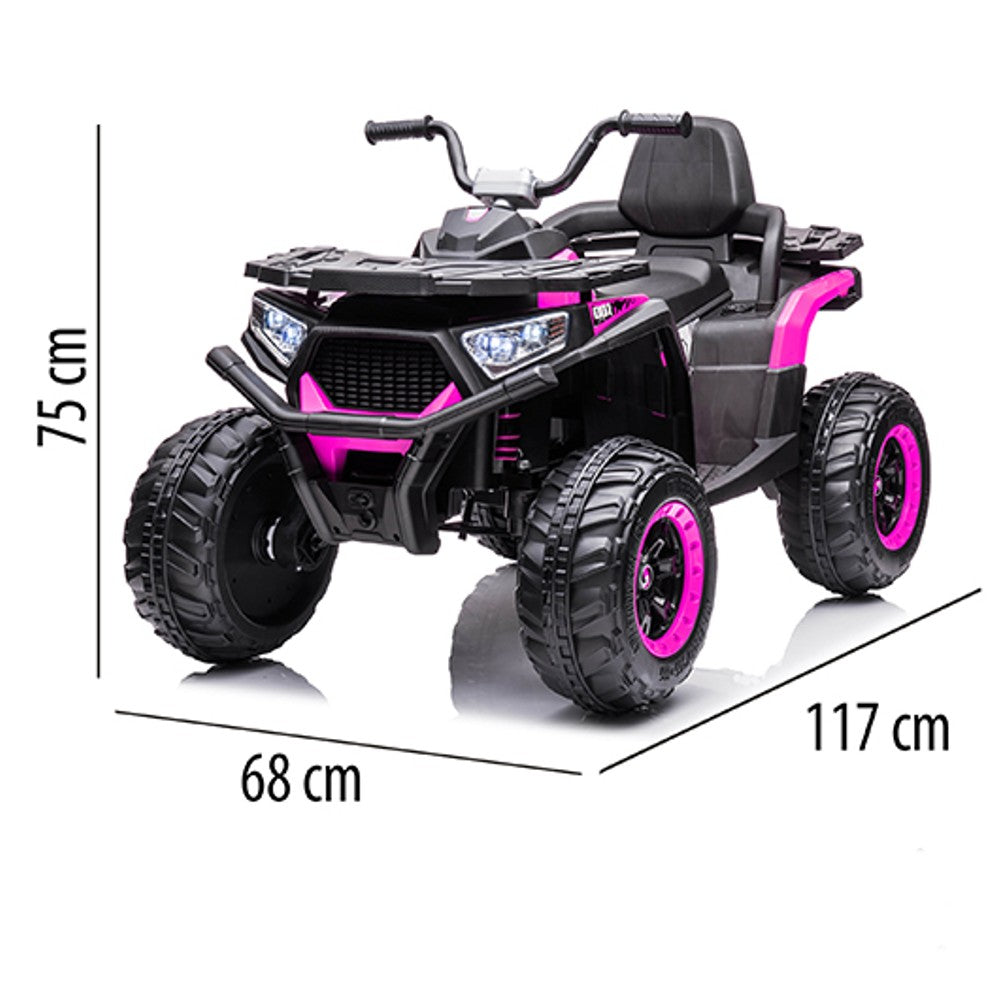 12VBatería recargable4 MotoresLuz y sonidoControl remotoEntrada USB/MP3/BLUETOOTHAsiento con respaldoAlta y baja velocidadSuspensión en 4 ruedasVelocidad: 6.0Km/hrPeso maximo: 30KGEdad: 3 a... Leer más...