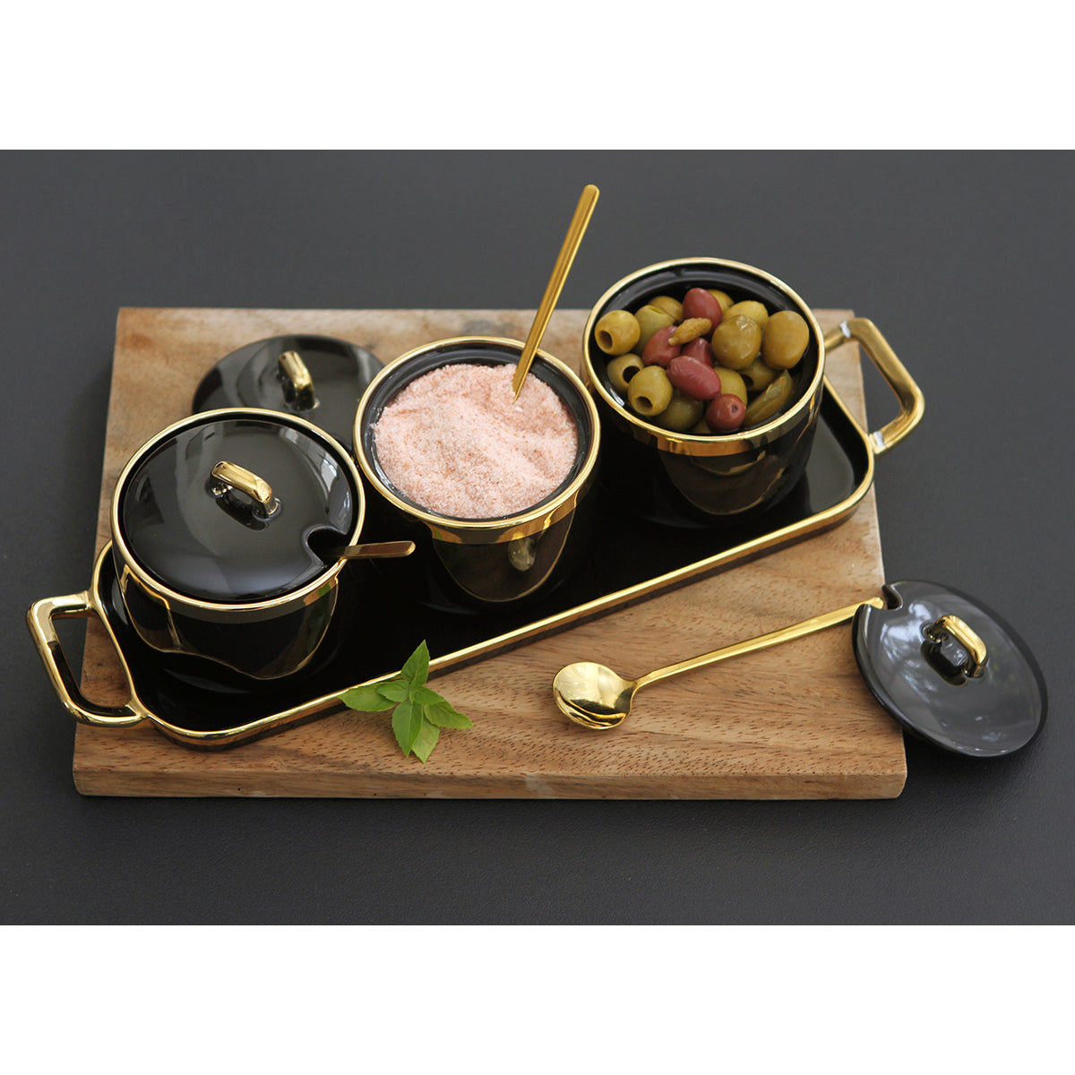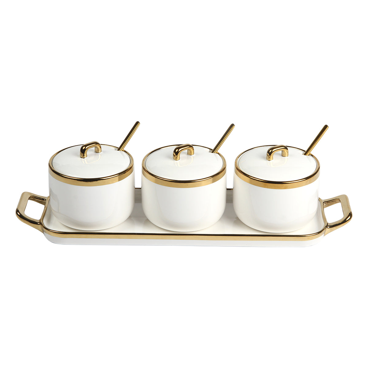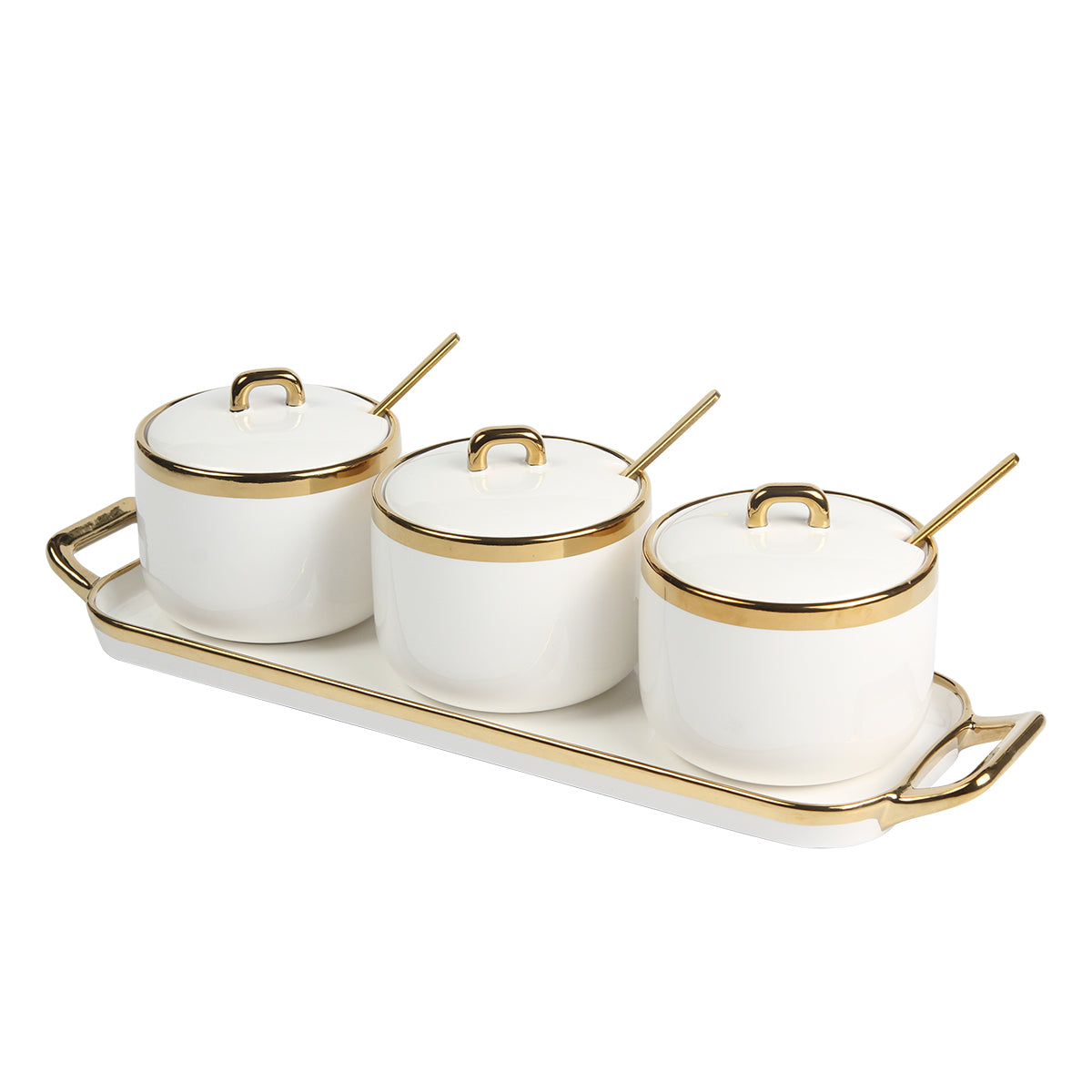 Set de contenedores. Set de 3 contenedores de cerámica con detalles dorados en las tapa, es una elección sofisticada y... Leer más...